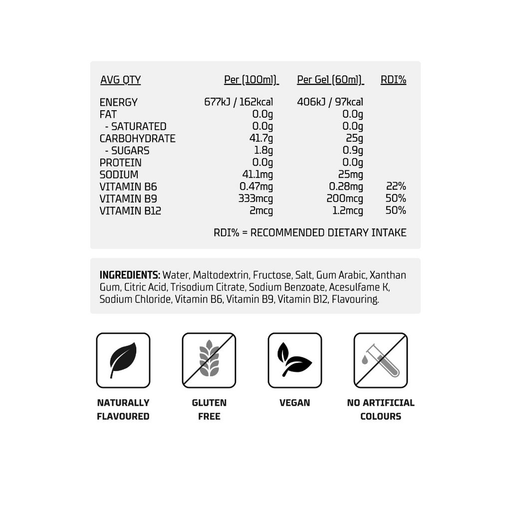 • Sports Performance: Take 1 gel 30 minutes pre-game or pre-training