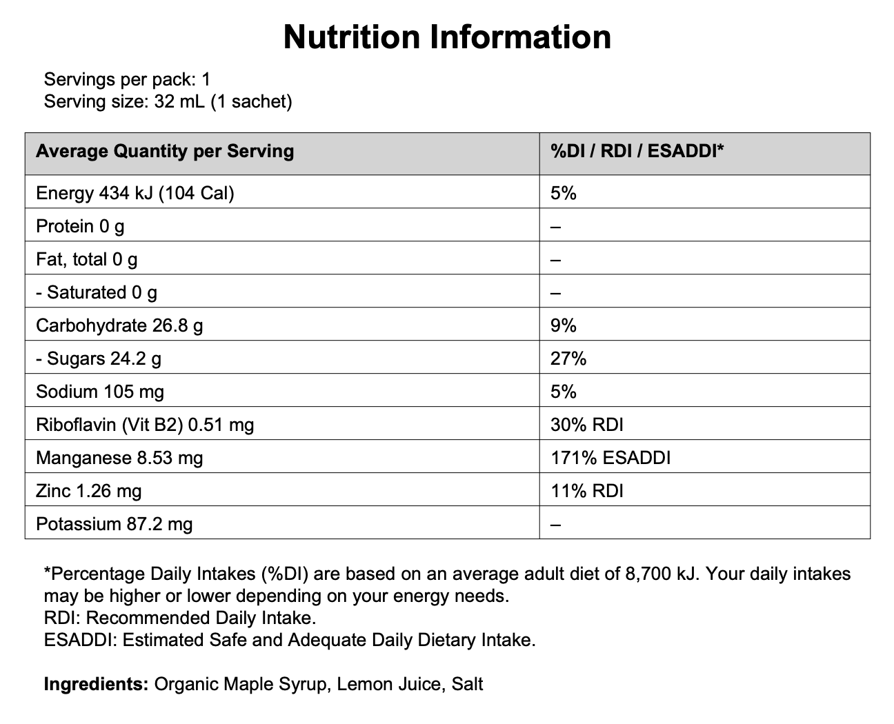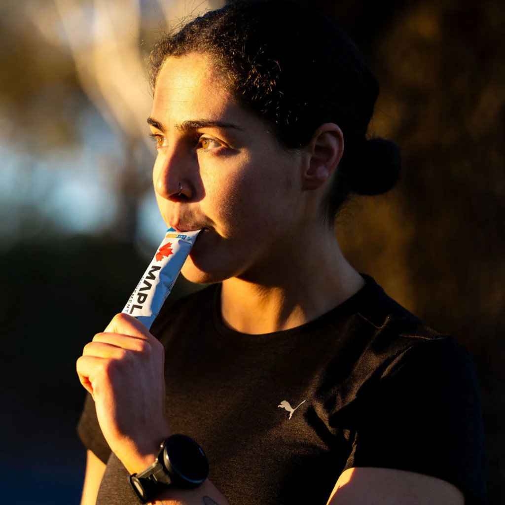Contains 27 g of natural carbohydrates from 100% organic maple syrup to support sustained energy levels.
