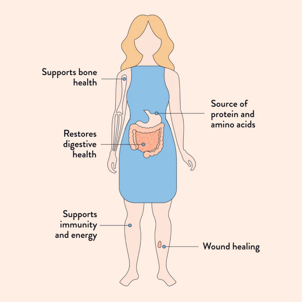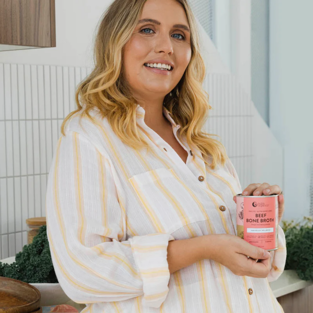 Grass Fed Beef Bone Broth Powder (Beef Bones, Filtered Water, Apple Cider Vinegar*, Himalayan Salt, Hydrolysed Collagen) (90%), Tapioca Starch*, Deactivated Savoury Flakes, Turmeric Powder* (2%), Black Pepper.