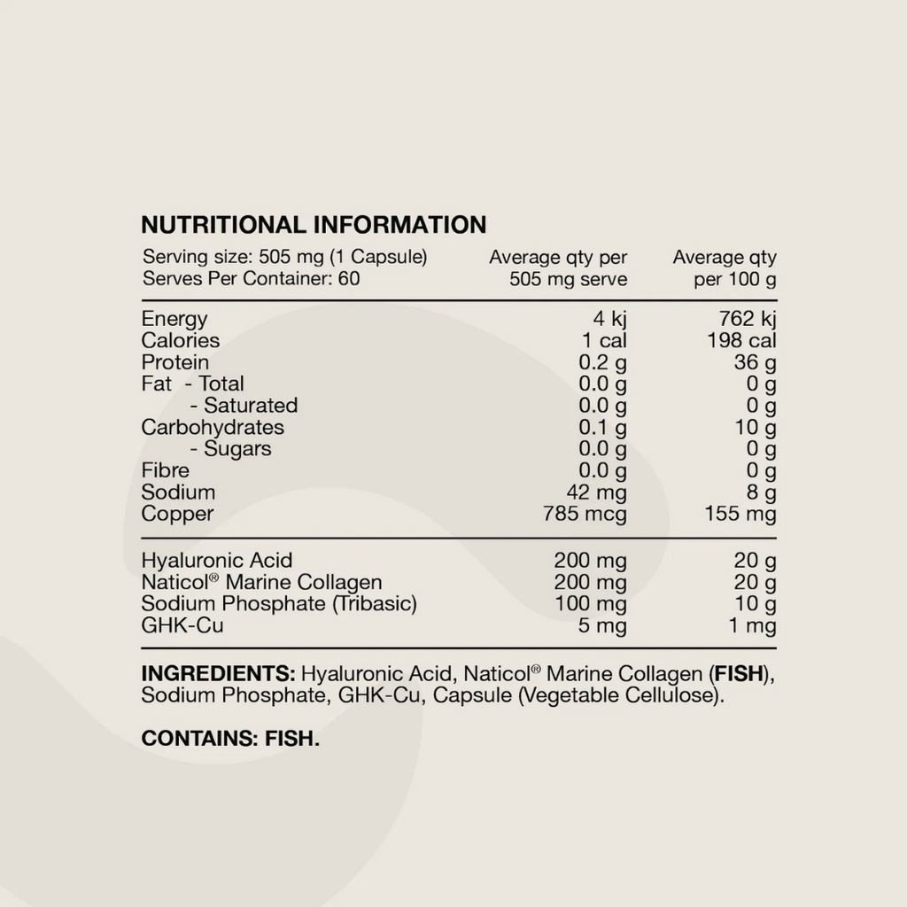This isn't just a cosmetic supplement — it's cellular rejuvenation from within. GHK-Cu acts as a signal peptide, instructing your body to repair and regenerate tissues, while marine collagen provides the building blocks, and hyaluronic acid locks in hydration and elasticity.