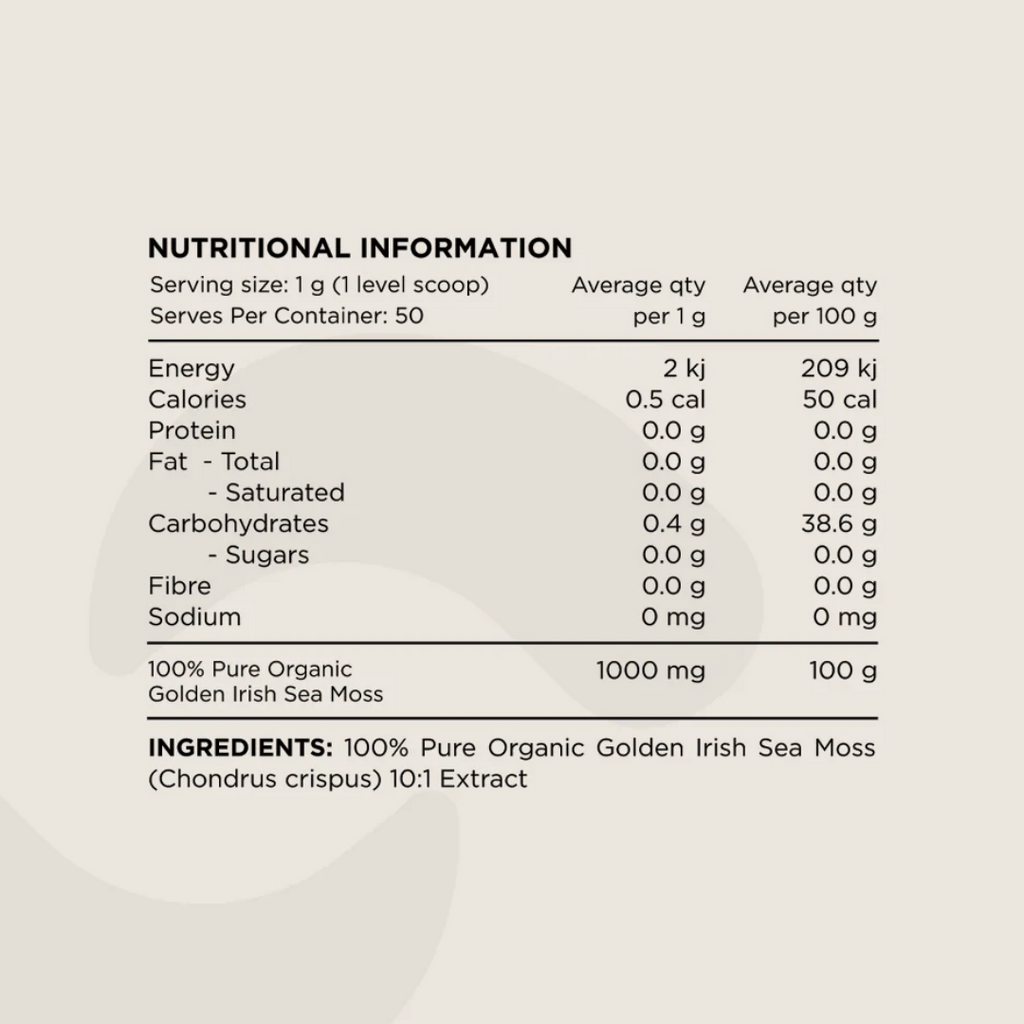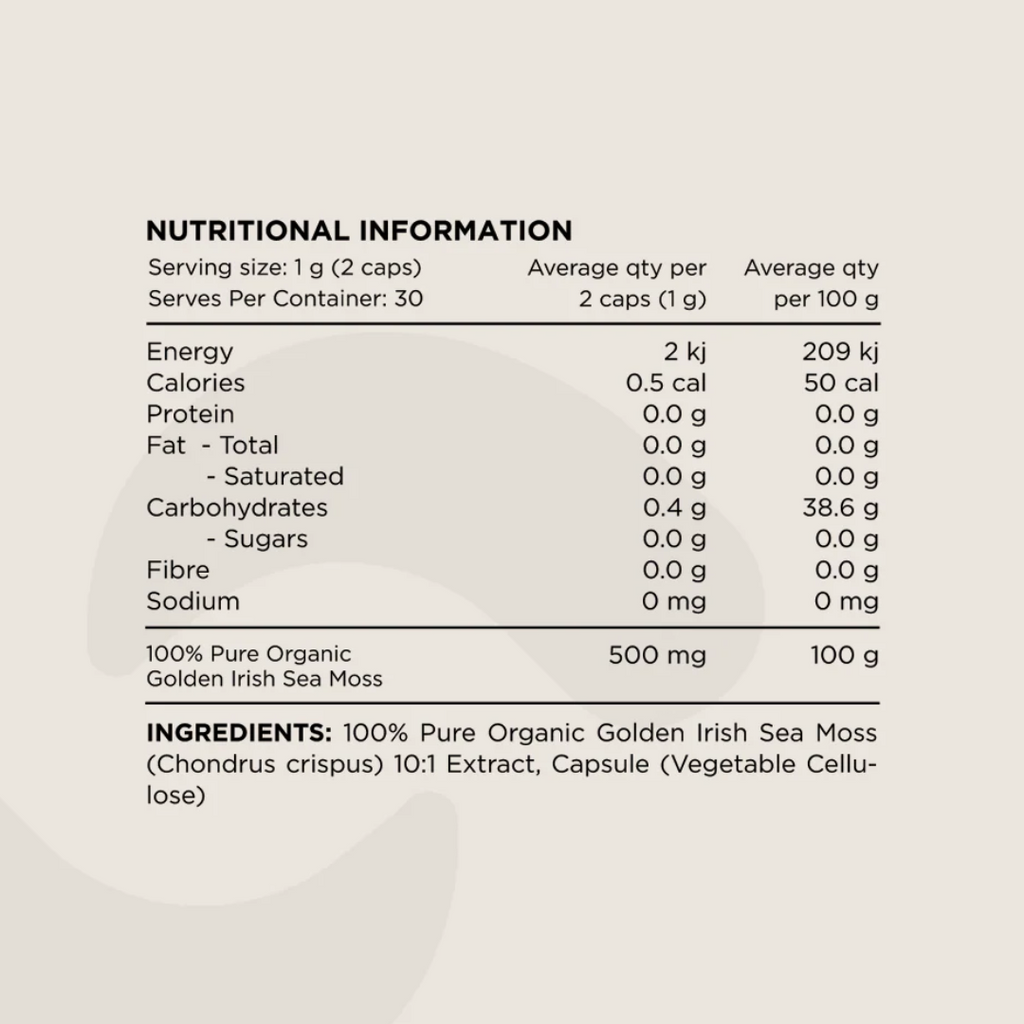• Concentrated to provide the equivalent of 10g raw sea moss
