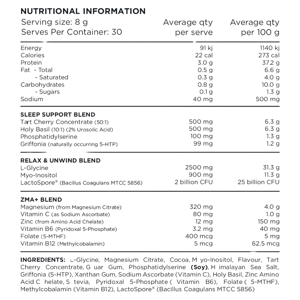 Consume 1 serve 30 – 90 minutes before bed in 250ml - 300ml of cold or hot water.