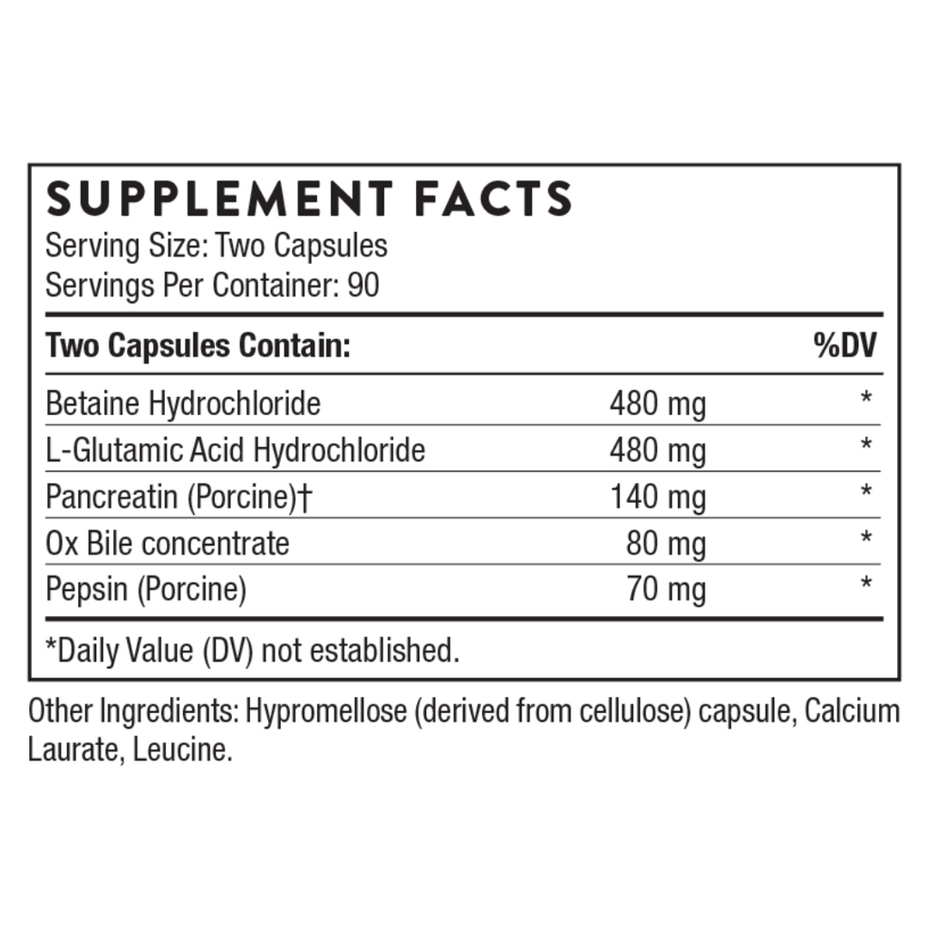 • Combines HCL, pepsin, pancreatic enzymes, and ox bile