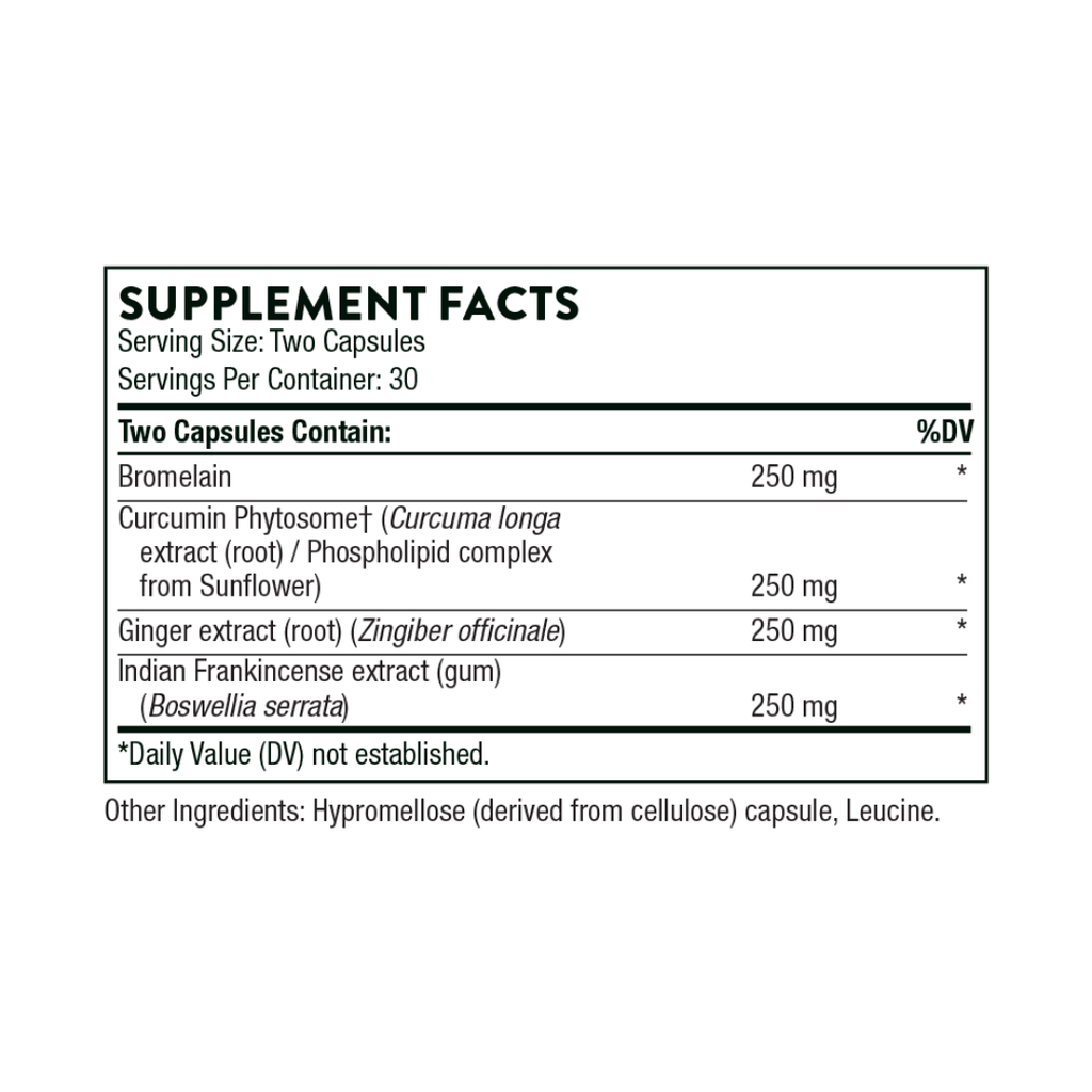 • Botanical combination: boswellia, ginger, and bromelain