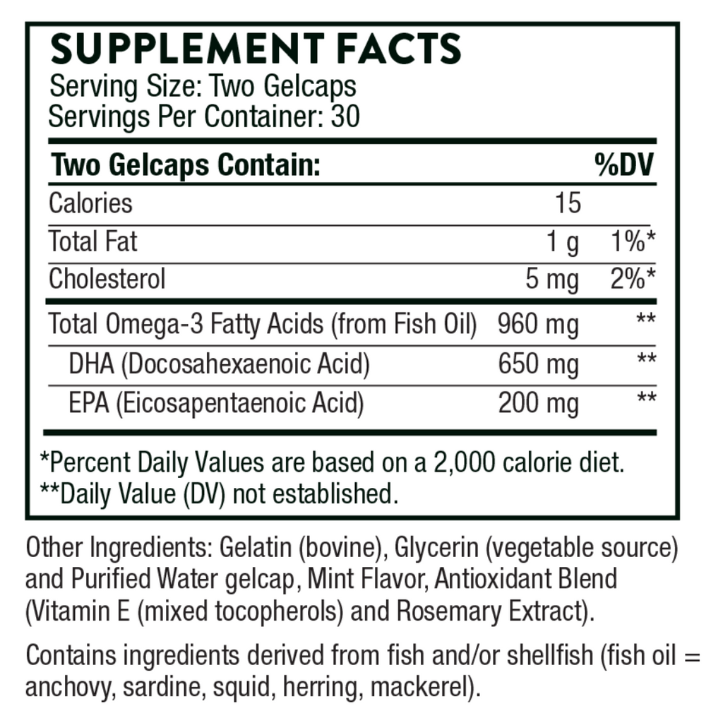 • Contains 650 mg DHA and 200 mg EPA per serving