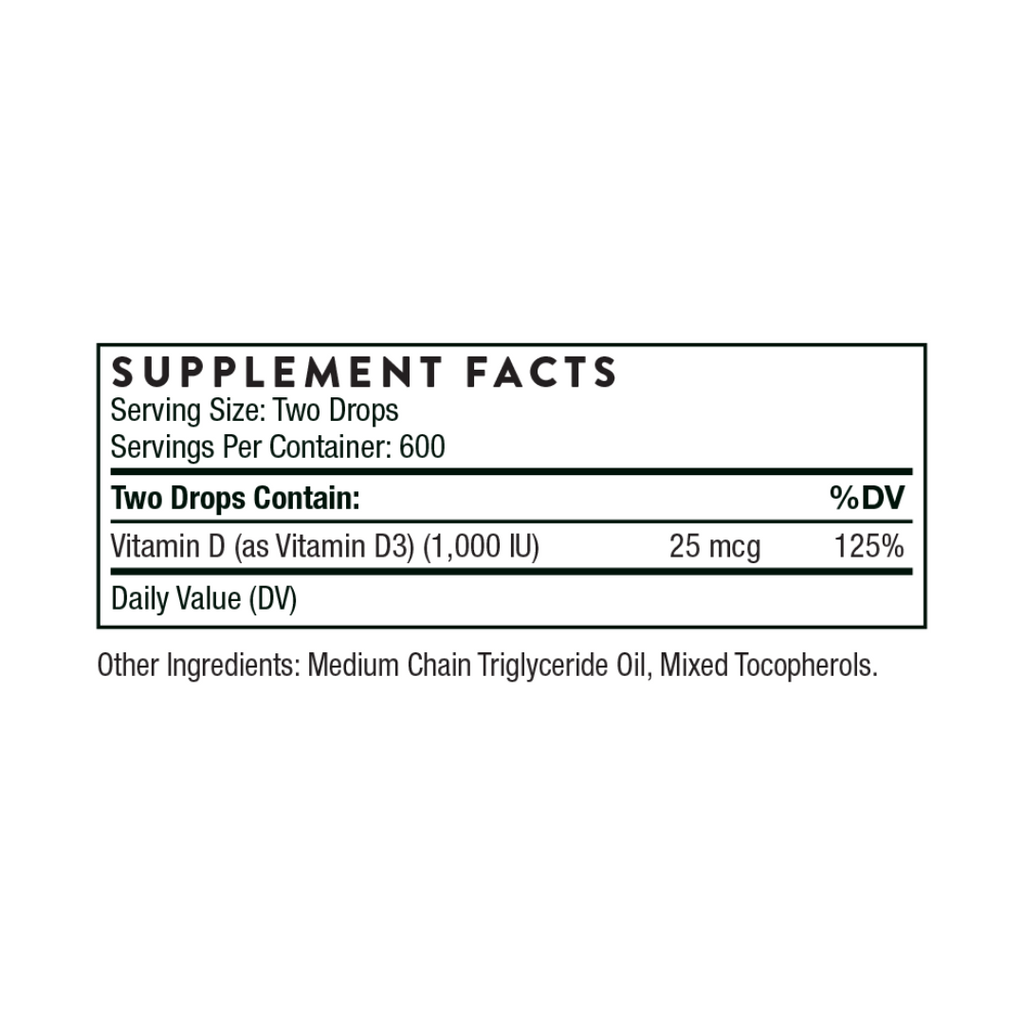 Thorne Vitamin D Liquid provides a clean, convenient source of vitamin D3 (cholecalciferol) in a highly absorbable liquid format. This product is ideal for individuals seeking a precise and easy way to supplement with vitamin D, with each drop delivering a consistent amount.